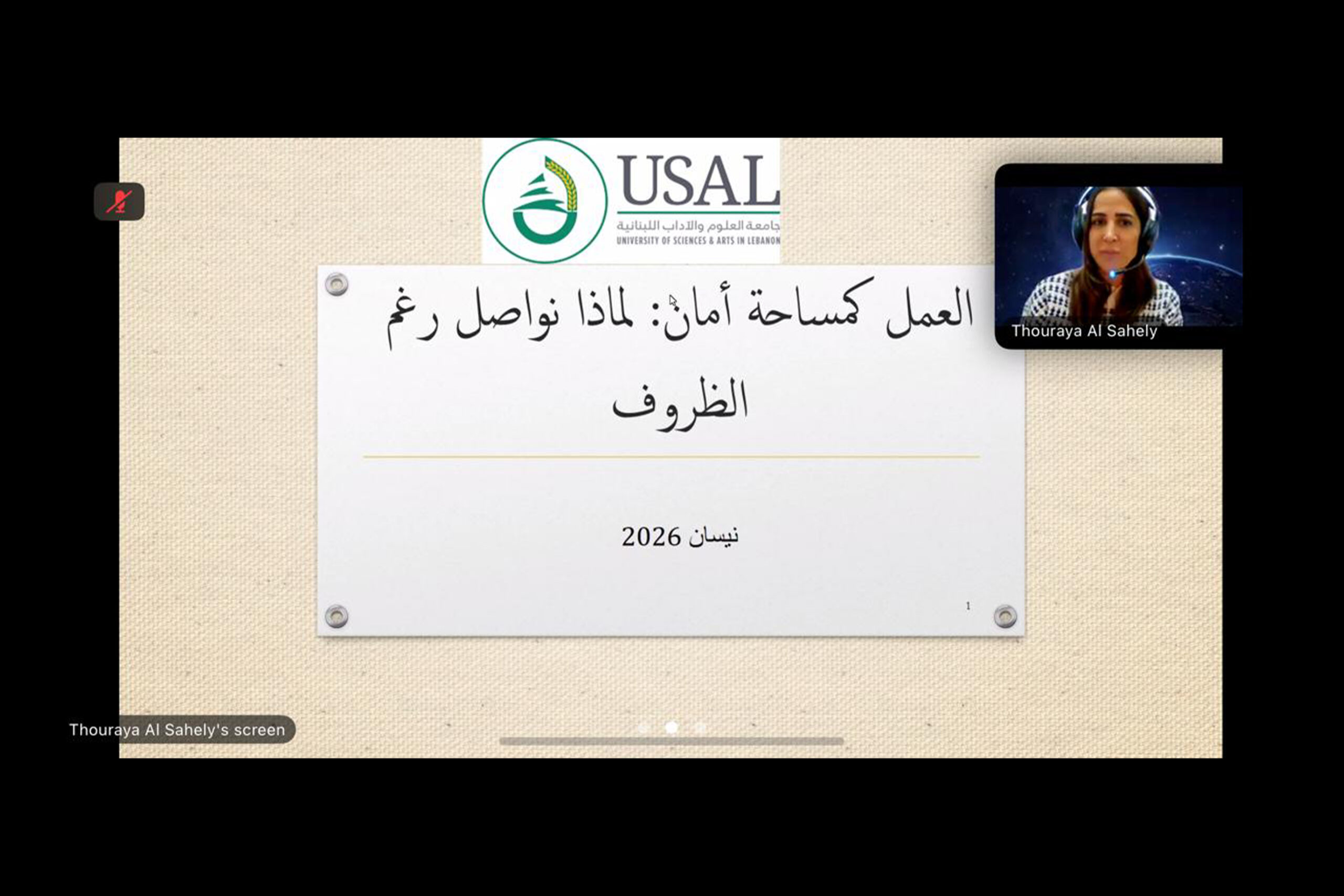 As part of its awareness activities, University of Sciences and Arts in Lebanon organized an awareness session titled: “Work as a Space of Safety – Why Do We Continue Despite the Circumstances?”